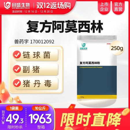 【回盛生物】#復方阿莫西林粉250g 抗菌消炎呼吸道母豬保健產后消炎黃白痢豬丹毒副豬鏈球菌