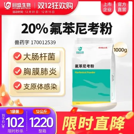 【回盛生物】#20%氟苯尼考粉1000g細菌性呼吸道綜合癥咳喘咳嗽抗菌消炎母豬保健產后消炎腹瀉獸藥