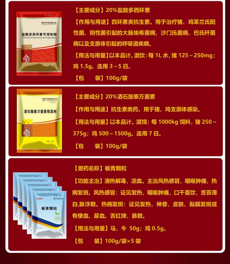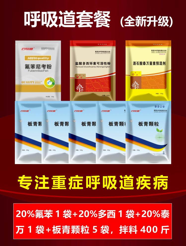 【百牧通】呼吸道套餐(20%氟苯1袋+20%多西1袋+20%泰萬1袋+板青5袋)重癥咳喘套餐