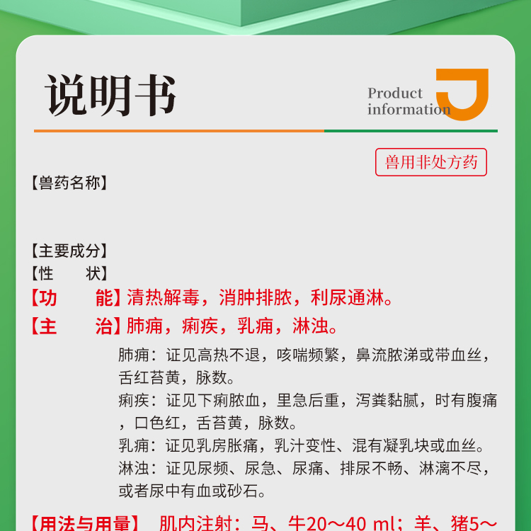 【豬大夫】魚腥草注射液 母豬產(chǎn)后保健 子宮內(nèi)膜炎 乳房炎 呼吸道疾病