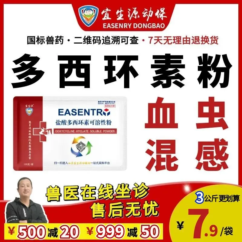 處方藥 【宜生源】10%鹽酸多西環素可溶性粉 強力霉素獸藥附紅體感染母豬保健腹瀉腸炎咳嗽氣喘過奶止痢土霉素類