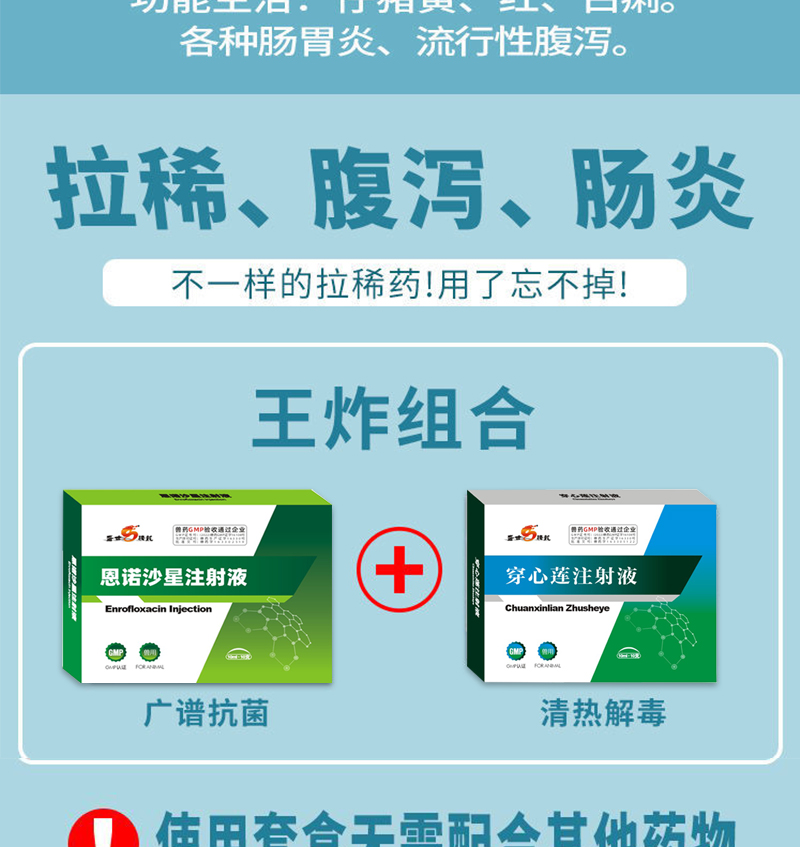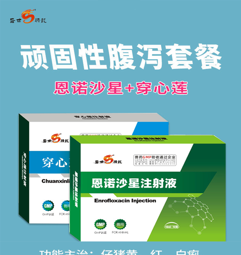 【盛世騰龍】頑固腹瀉藥包 穿心蓮注射液+恩諾沙星注射液 頑固性腹瀉 拉稀、腹瀉、腸炎解決方案