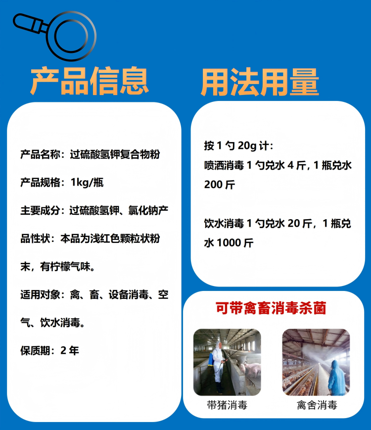 【華農(nóng)利邦】過硫酸氫鉀復(fù)合物粉 2斤/瓶孕畜可用 消毒粉消毒劑消毒藥豬圈消毒