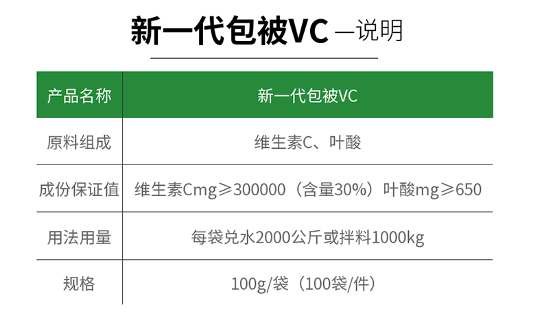 【雙冀動保】30%包被VC100g適用于缺乏維生素微量元素食欲減退暑熱應激補充維生素C微量元素