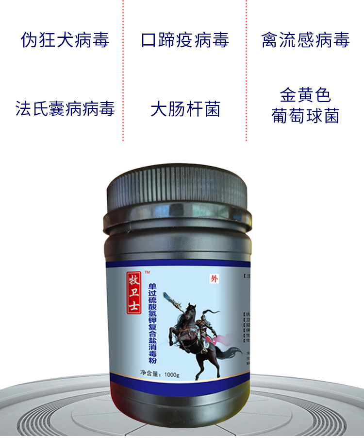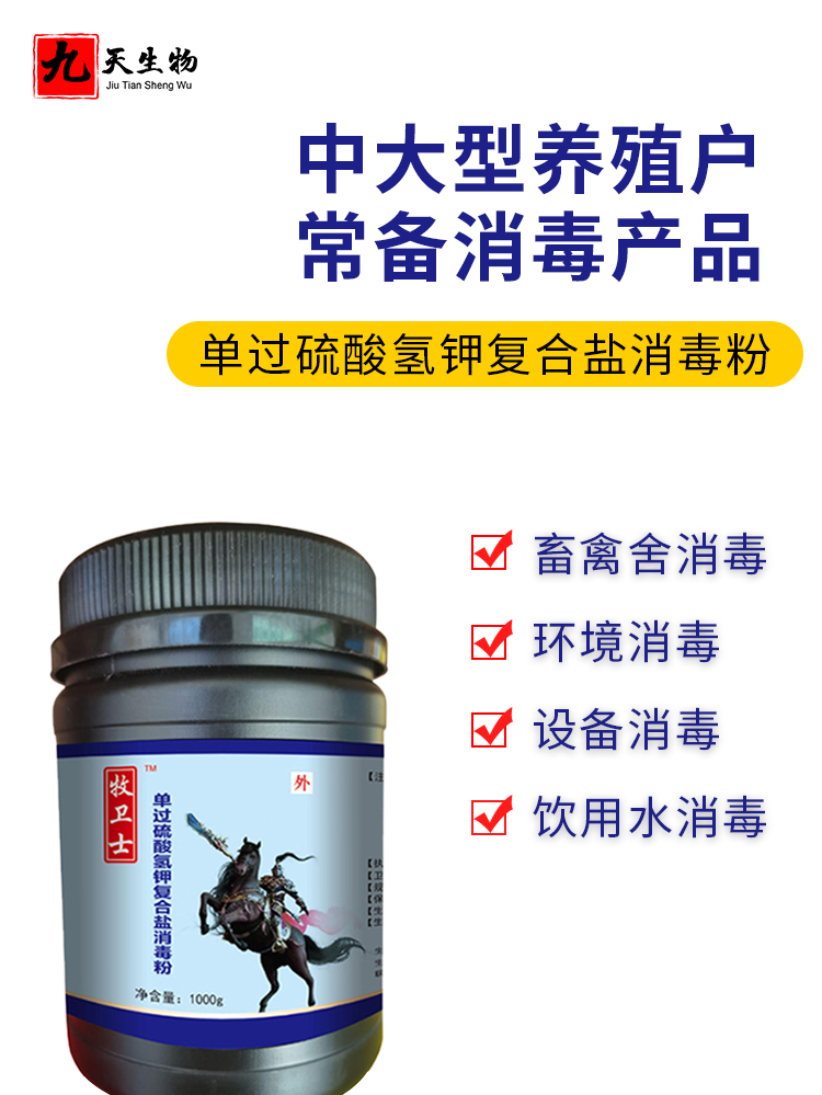 【九天生物】牧衛(wèi)士1000g/桶 豬用過硫酸氫鉀消毒劑豬場養(yǎng)殖場獸用消毒液非瘟口蹄疫病毒可帶豬消毒