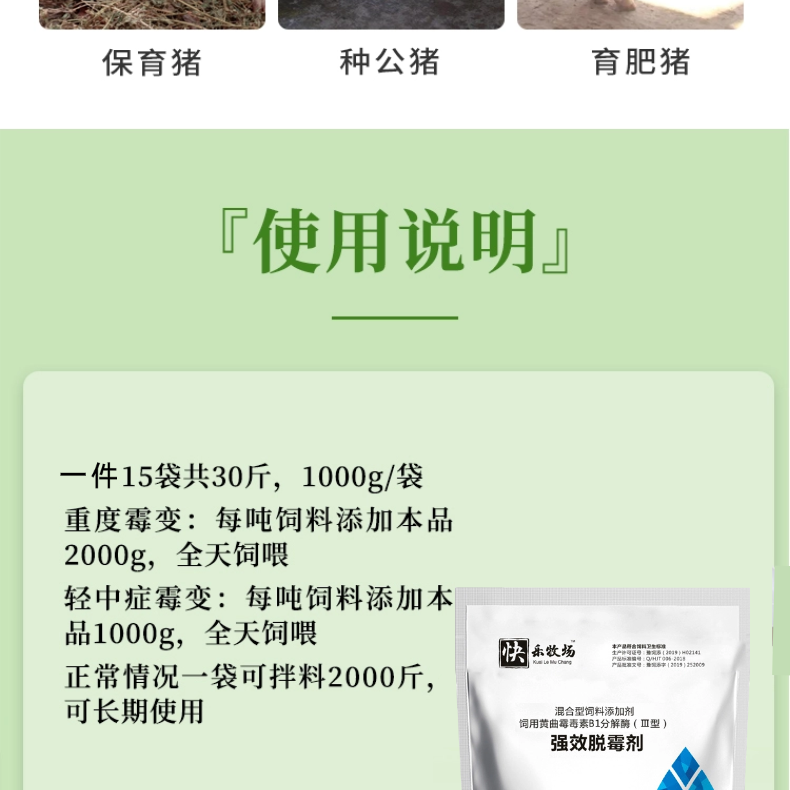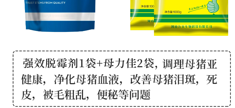 【九天生物】強效脫霉劑1000g*15袋/件 豬用酵母細胞壁脫霉劑生物+物理脫霉雙重吸附孕畜可用獸用
