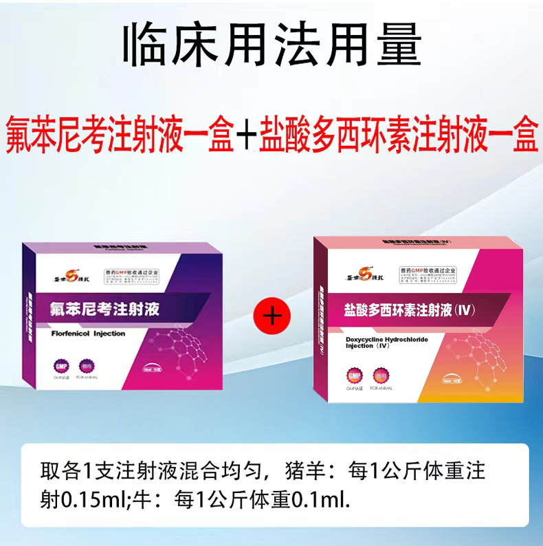 【盛世騰龍】呼吸道套餐鹽酸多西環素注射液+氟苯尼考注射液支原體肺炎胸膜肺炎無名高熱治療呼吸道混合感染
