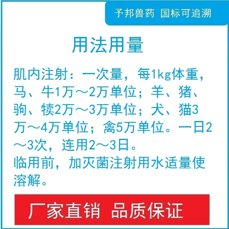 處方藥 【予邦】80萬單位注射用青霉素鉀50支獸用獸藥 國(guó)標(biāo)可追溯 抗生素抗菌 豬牛羊馬犬 孕畜可用