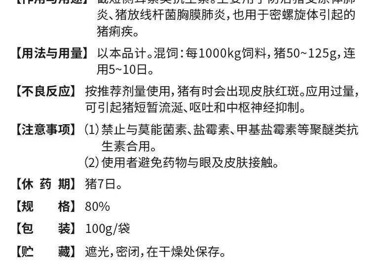 【鼎合牧高】包被 80%延胡索酸泰妙菌素預(yù)混劑 包被豬支原體胸膜肺炎