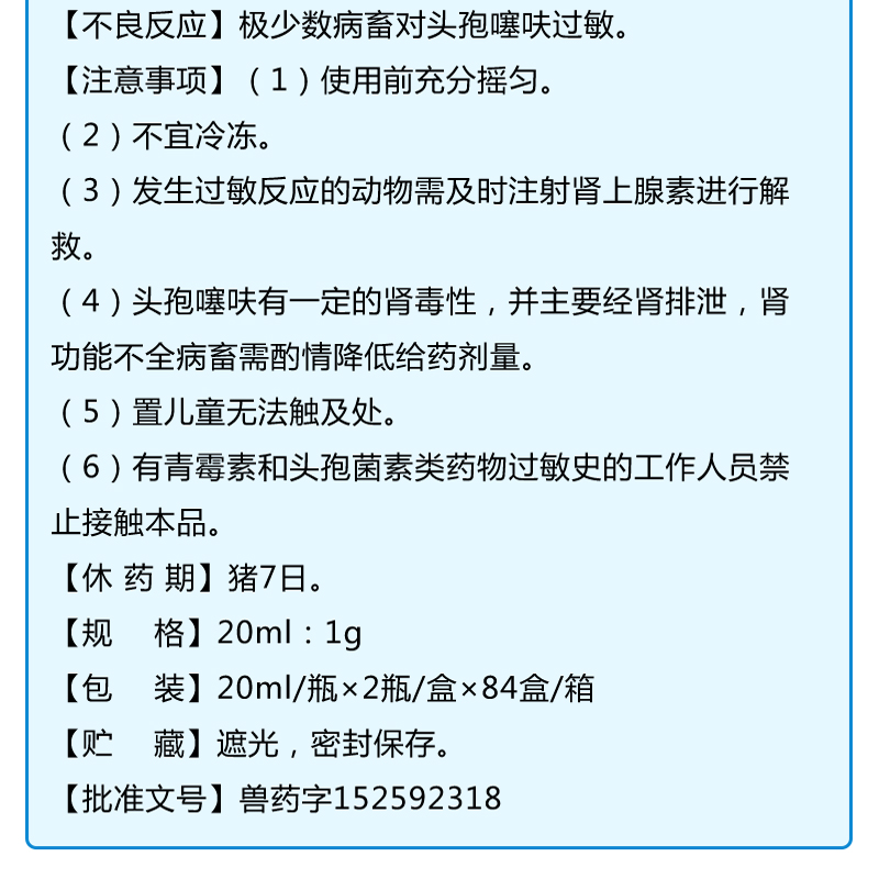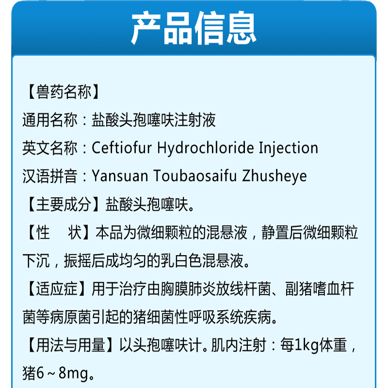 處方藥 【支農(nóng)惠牧】鹽酸頭孢噻呋注射液 豬細(xì)菌性呼吸系統(tǒng)疾病