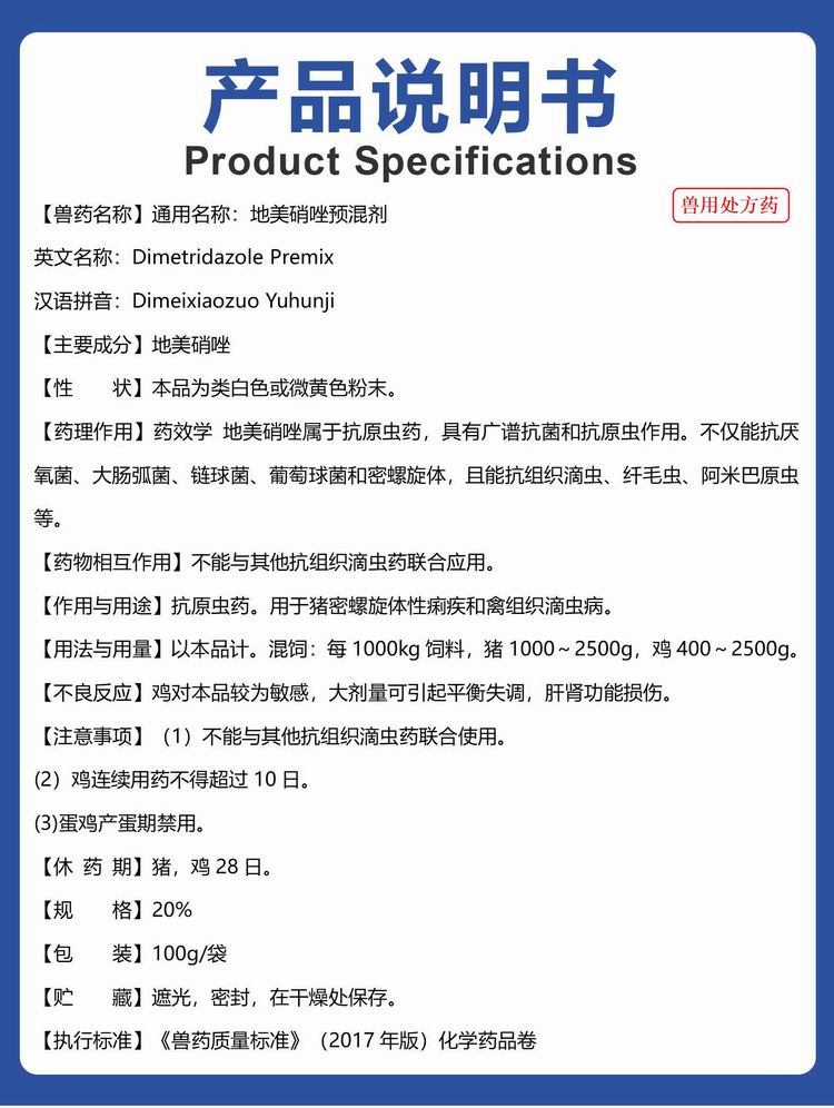 處方藥 【華農利邦】 20%地美硝唑預混劑 拉稀腹瀉 血痢 黑痢 腸道感染 大腸桿菌 腸炎禽組織滴蟲病