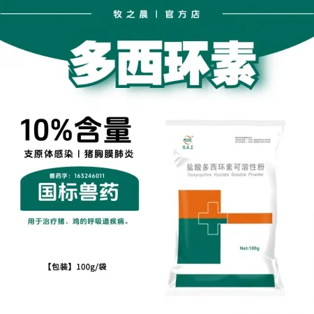 處方藥 【牧之晨】10%鹽酸多西環(huán)素可溶性粉100g 用于治療豬雞沙門(mén)氏菌病巴氏桿菌病及支原引起的呼吸道疾病