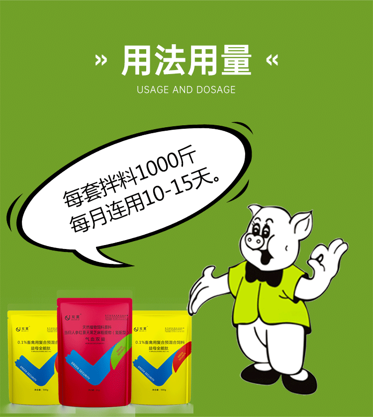 母豬套餐已經收到了,我家母豬這么多年一直在使用雙冀動保的這個產品,效果一如既往的牛,母豬各個階段都非常穩定,產仔率也非常不錯,支持好產品