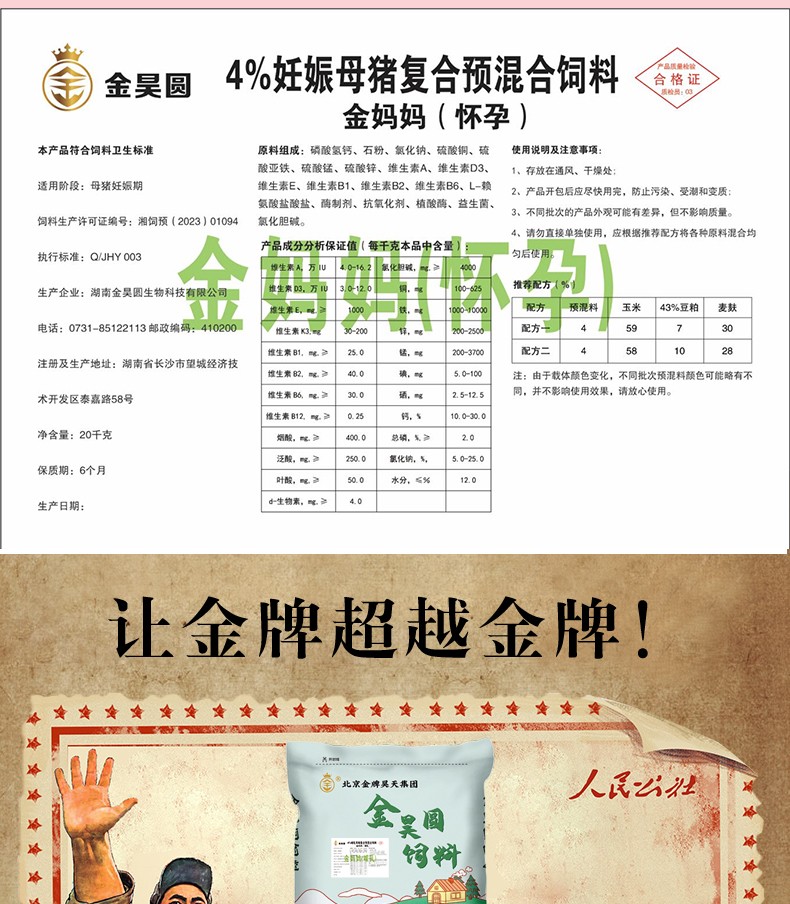 - 滿贈滿10件贈1件,【金昊圓-金媽媽】4%妊娠母豬預混料飼料 妊娠料懷孕料階段使用