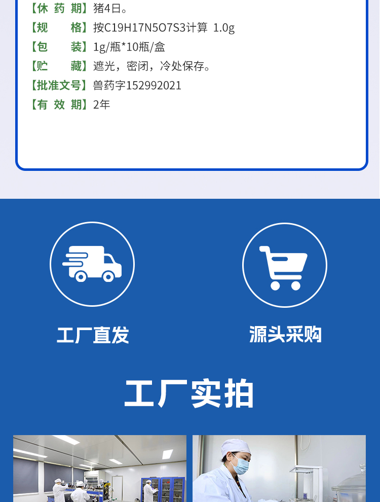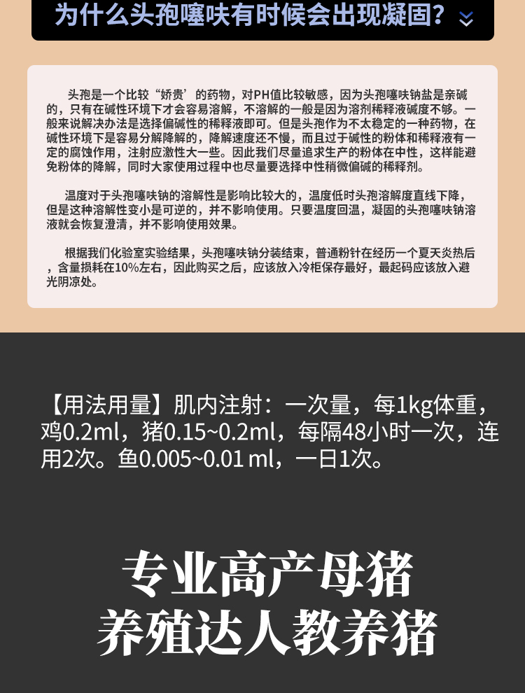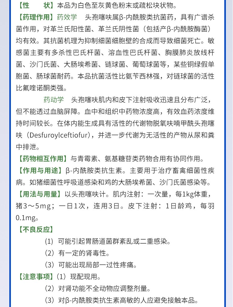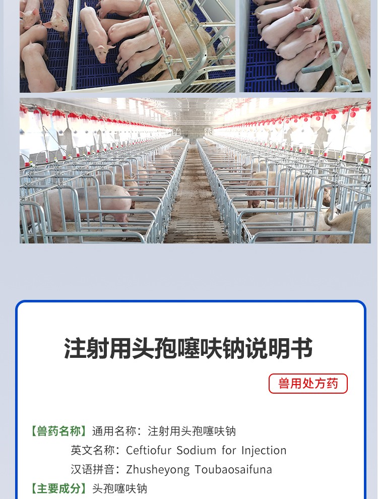 處方藥 【小易制藥】粉針劑1g注射用頭孢噻呋鈉三代頭孢用于母豬產前產后消炎,仔豬三針保健,奶牛乳房炎等的治療
