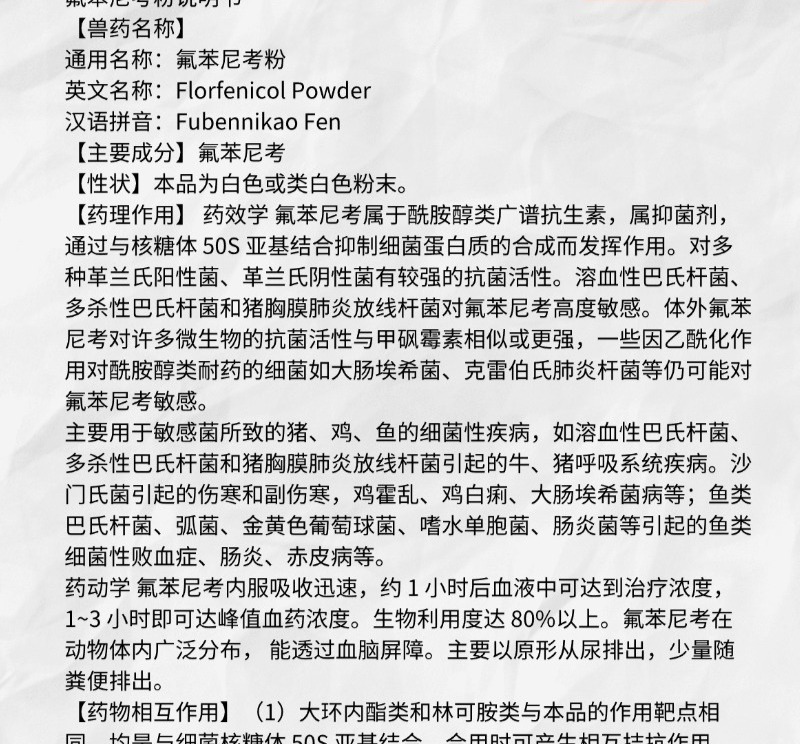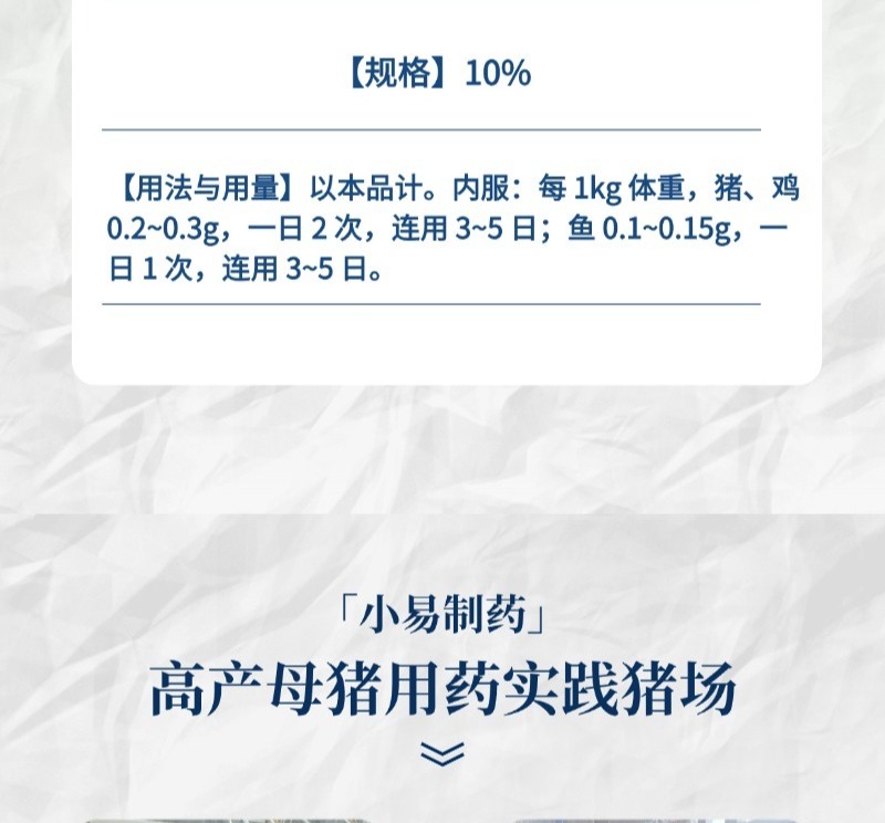 處方藥 【小易制藥】10%氟苯尼考粉細菌性呼吸道綜合癥 咳喘咳嗽 抗菌消炎 母豬保健 產后消炎