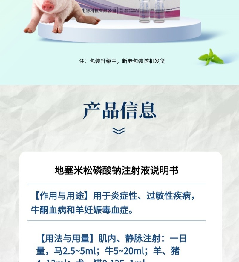 處方藥 【小易制藥】地塞米松磷酸鈉注射液5ml針劑豬牛羊消炎退熱抗過敏抗應激口蹄疫呼吸道感染關節炎