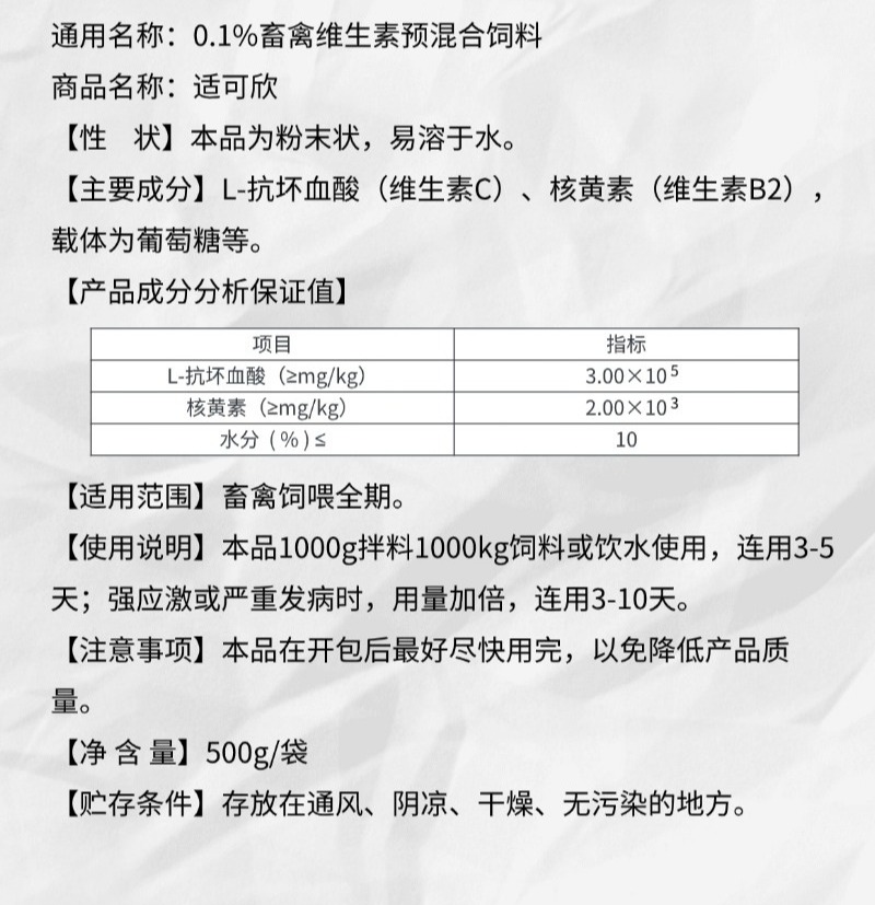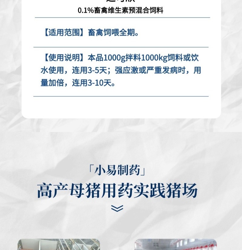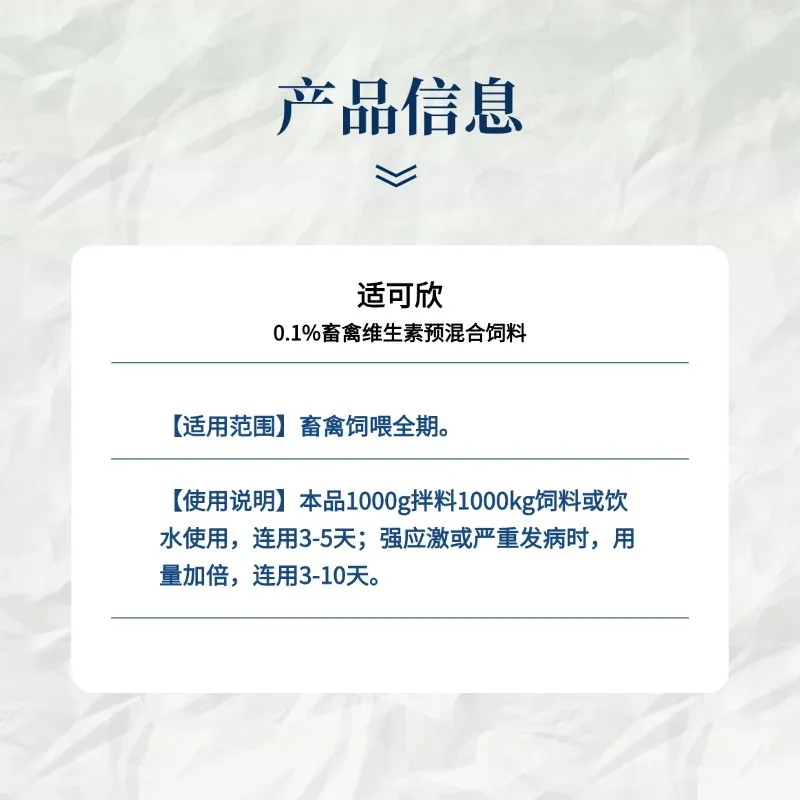 【小易制藥】適可欣0.1%畜禽維生素預混合飼料,提供營養(yǎng)提高免疫力改善亞健康提高生產(chǎn)繁殖性能病后恢復