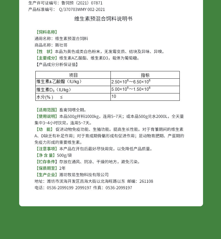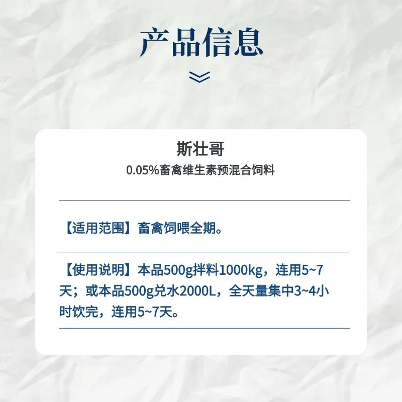 【小易制藥】斯壯哥維生素預混合飼料促進動物免疫生殖功能提高生長性能補足育雛期AD促進育成期骨骼形成