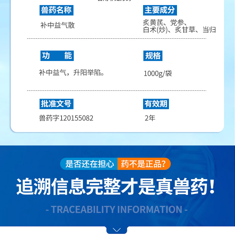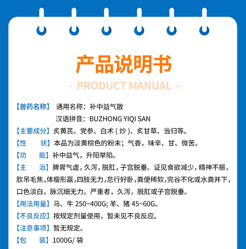 商品詳情商品名稱【中龍神力】補中益氣散 1公斤 脾胃氣虛 補血補氣 縮短產程 提高精液質量 國標獸藥