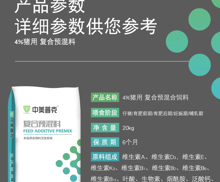 【中美普克】4%豬復合預混料 仔豬 中豬 大豬 妊娠母豬 哺乳母豬料 促生長 適口好 營養好 預混料