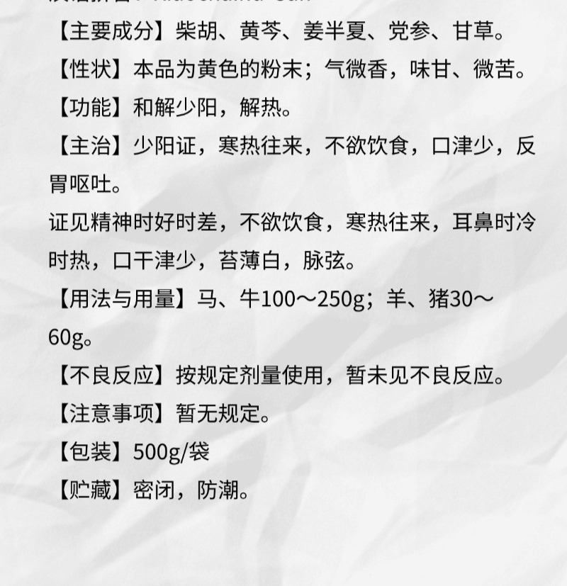 【小易制藥】小柴胡散解熱退燒清熱抗流感病毒高燒不退凈化圓環藍耳病毒豬瘟凈化豬場病毒寒熱往來食欲不振