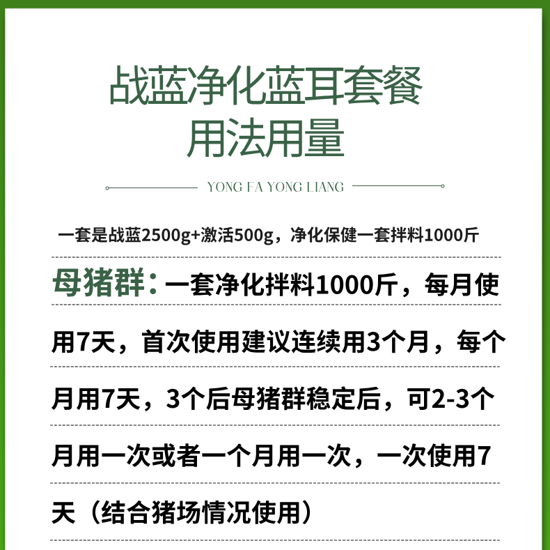 【九天生物】戰藍凈化藍耳病套裝3kg/套,母豬保育豬凈化藍耳圓環套餐母豬保健規模化養殖場使用