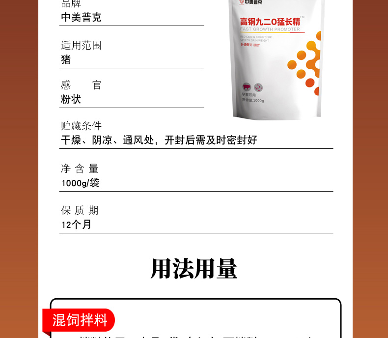 【中美普克】高銅九二0猛長精 1000g/袋 獸用豬催肥增重高銅九二0猛長精催肥促生長高銅920
