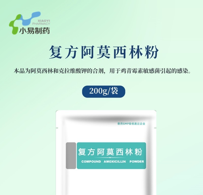 處方藥 【小易制藥】12.5%復方阿莫西林粉200g/袋抗菌消炎母豬保健產后消炎黃白痢豬丹毒副豬鏈球菌