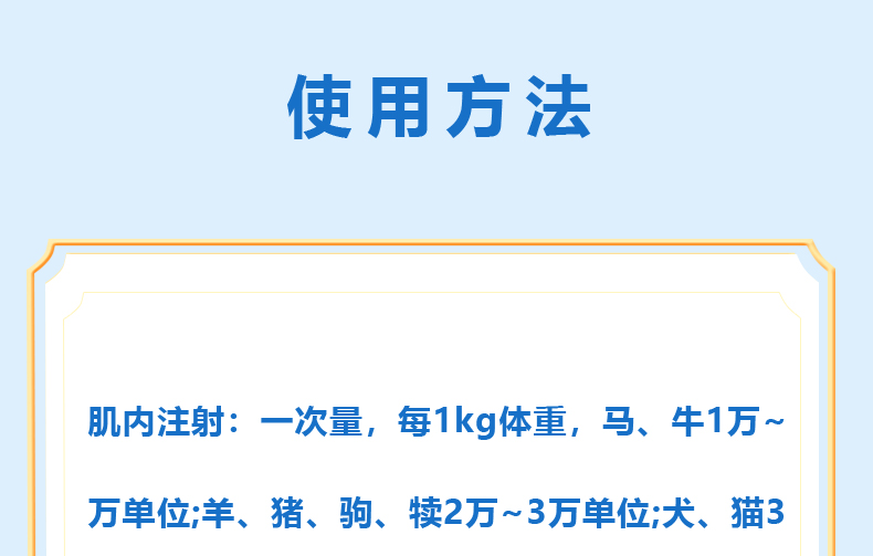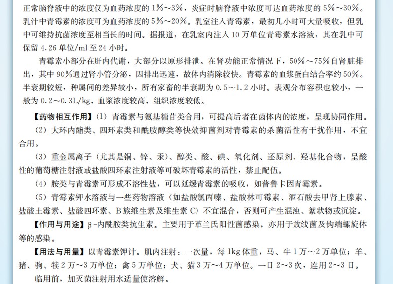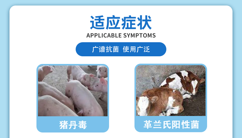 用于革蘭氏陽性菌感染,亦用于放線菌及鉤端螺旋體等的感染,如豬丹毒、氣腫疽、惡性水腫、放線菌病等