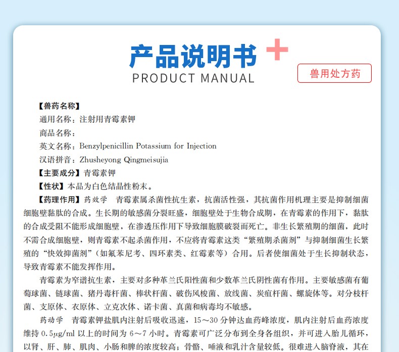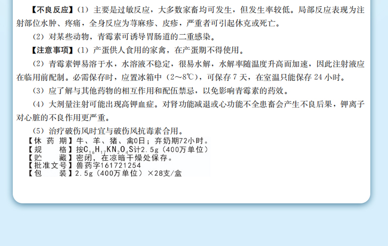 處方藥 【牧醫師】400萬注射用青霉素鉀28支國標獸藥豬牛羊馬犬可用 孕畜可用2.5g*28支/盒