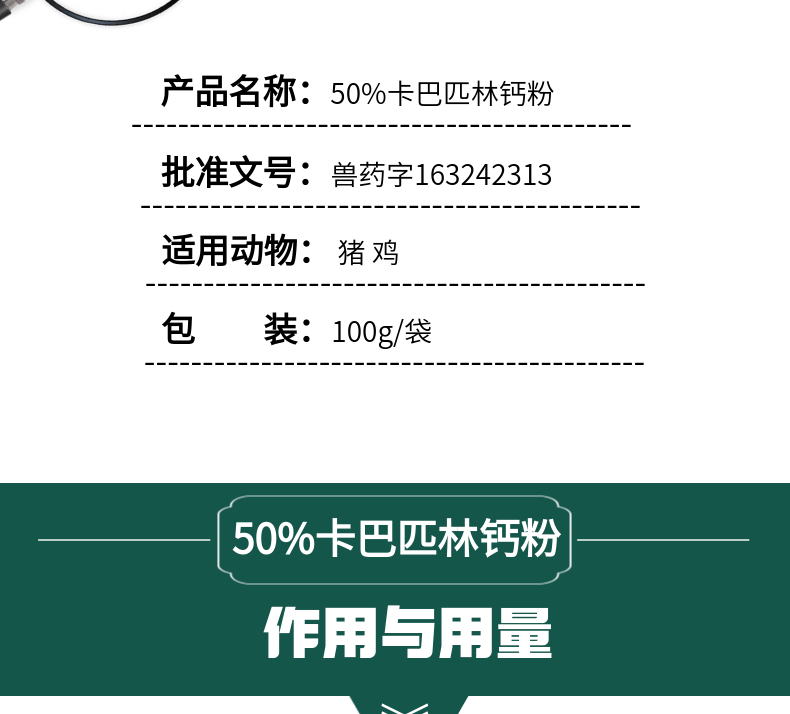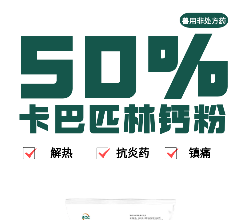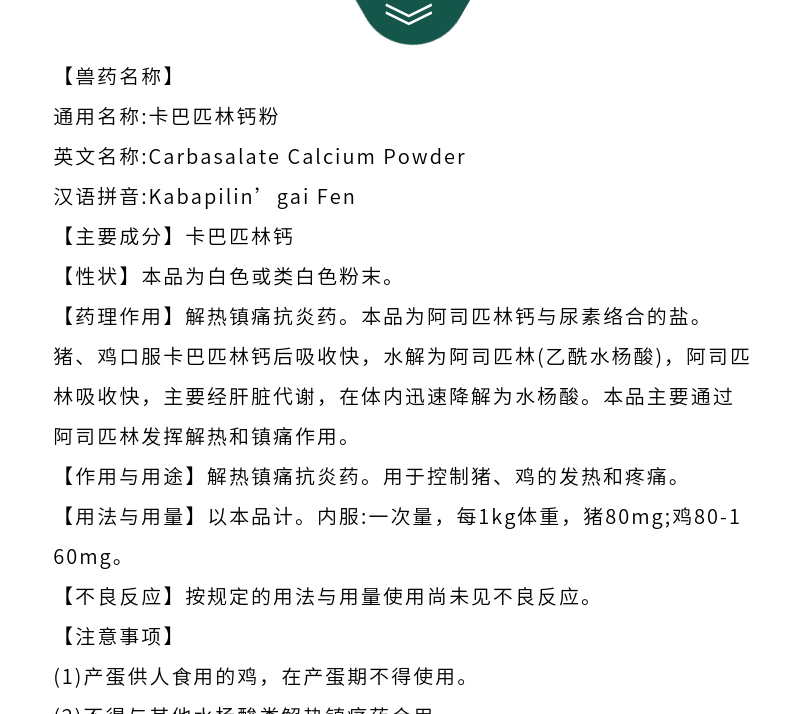 【牧之晨】50%卡巴匹林鈣可溶性粉100g 獸用 解熱鎮痛抗炎藥,用于控制豬、雞的發熱和疼痛
