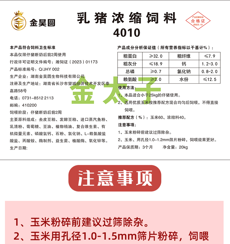 - 滿贈滿10件贈1件,【金昊圓-4010金太子】40%仔豬乳豬保育濃縮料四六比只配玉米
