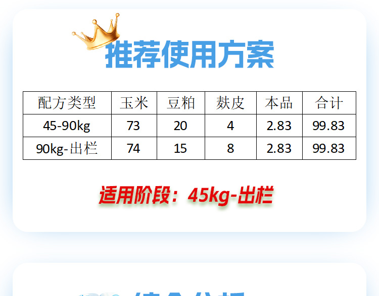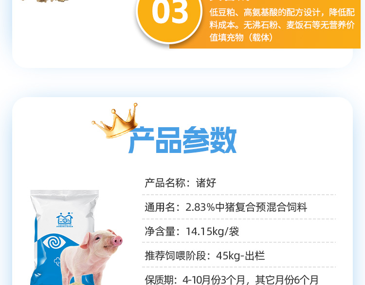 賣家回復:感謝老板的認可,2.83%中大豬料,主攻大豬長勢,降低料肉比,縮減出欄時間