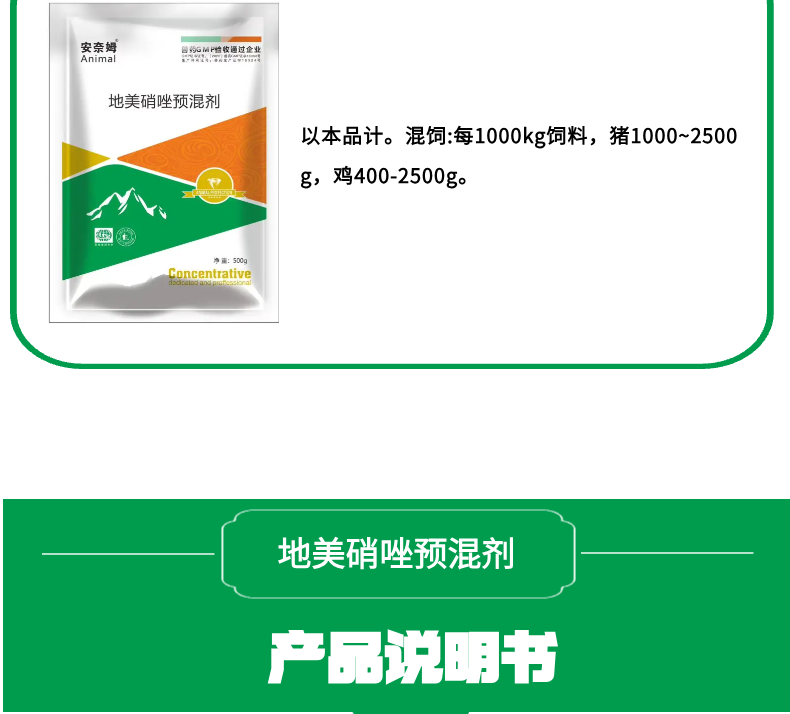 【牧之晨】20%地美硝唑預混劑500g 腹瀉拉稀 血痢 腸道感染大腸桿菌 腸炎等 豬用 獸用