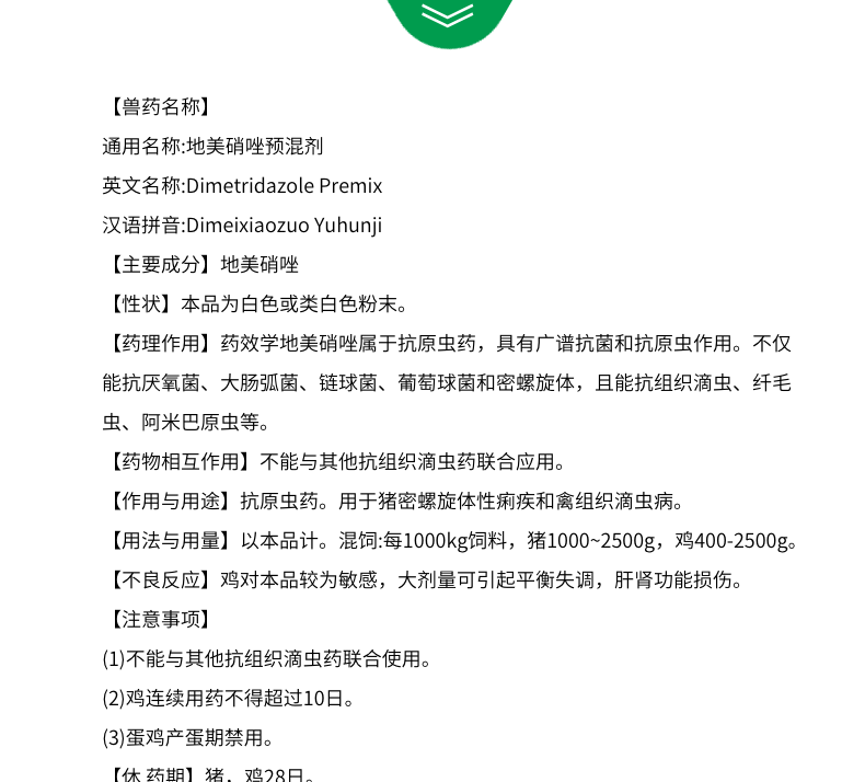 20%地美硝唑預混劑500g 腹瀉拉稀 血痢 腸道感染大腸桿菌 腸炎等 豬用 獸用