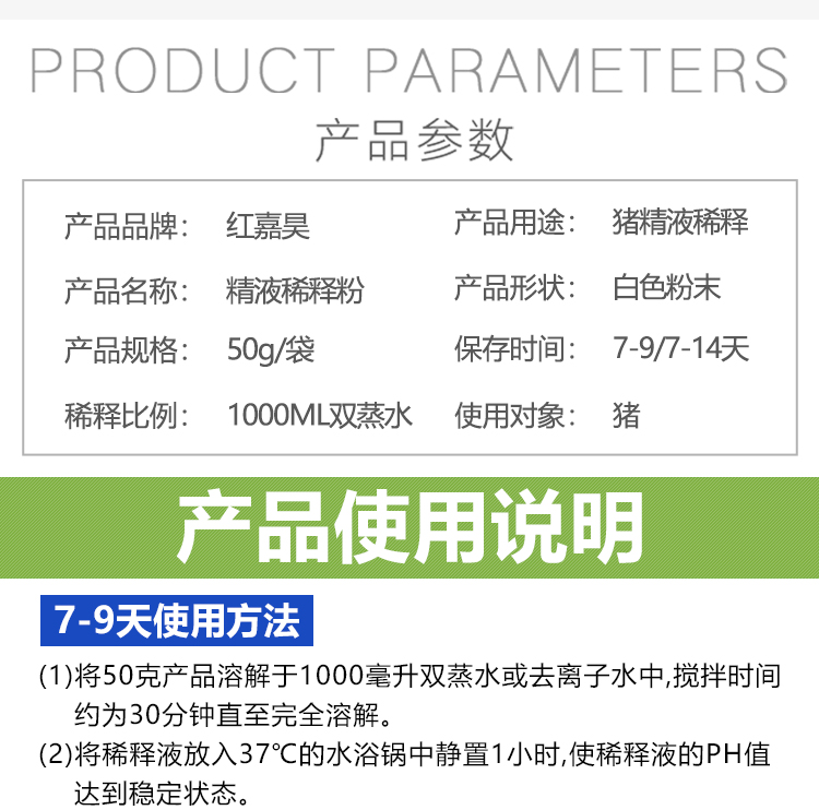 商品詳情商品名稱【樂淘農牧】美國7-9天豬精液稀釋粉