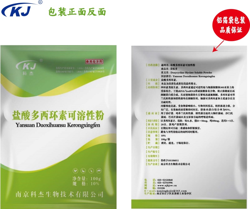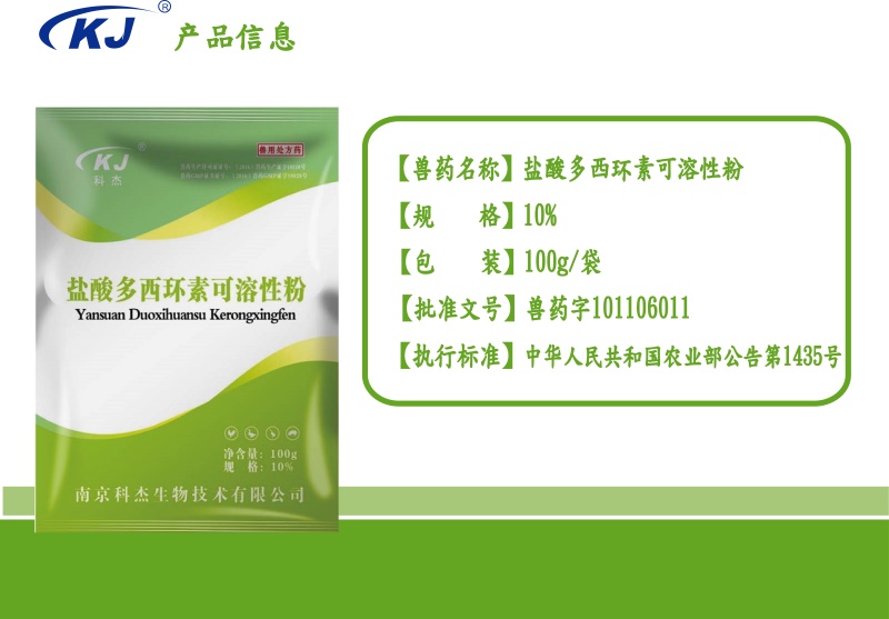 【南京科杰】10%鹽酸多西環(huán)素可溶性粉 用于治療畜、禽支原體呼吸道疾病、附紅體病,弓形體病。