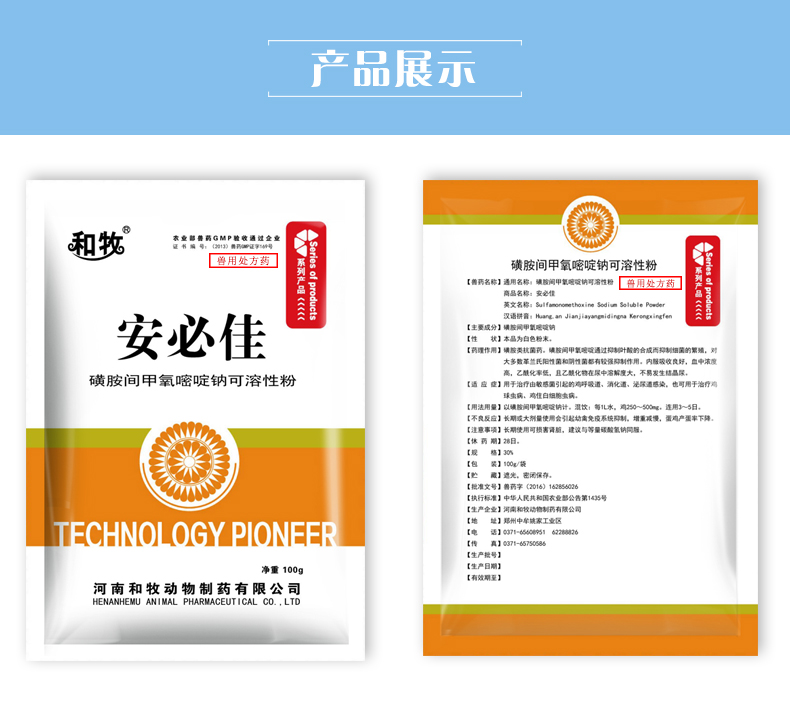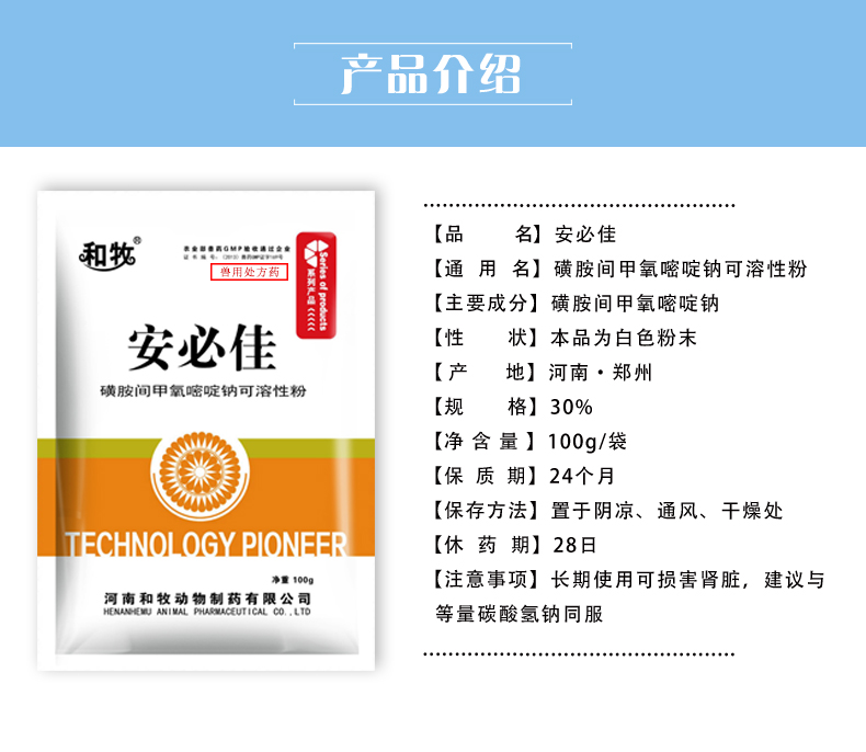 處方藥 【和牧制藥】安必佳30%磺胺間甲氧嘧啶鈉可溶性粉100g/袋 鏈球菌弓形體附紅細胞體呼吸道球蟲性腹瀉
