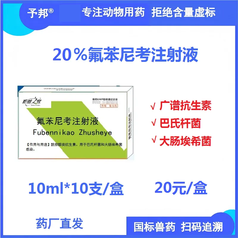 處方藥 【予邦】20%氟苯尼考注射液10ml*10支獸用獸藥 國標可追溯 抗菌細菌感染胸膜肺炎大腸埃希菌