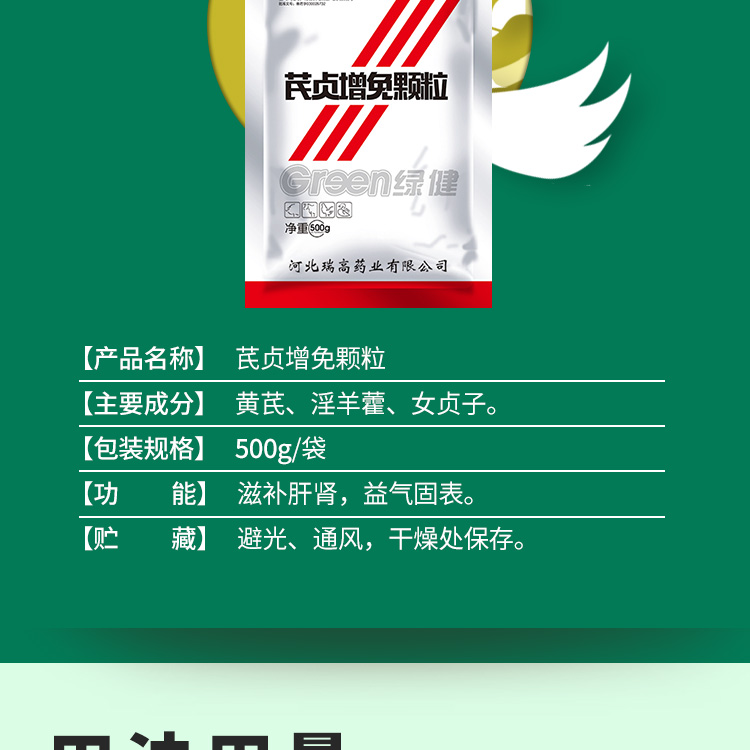 *【綠健獸藥】芪貞增免顆粒500g滋補(bǔ)肝腎,益氣固表。雞免疫力低下