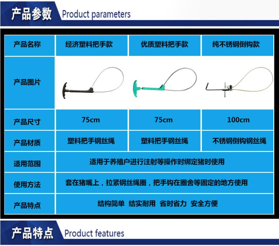 商品詳情商品名稱約克(YORK) 獸用鋼絲繩套豬器 豬用套子保定器 套豬繩 套豬器