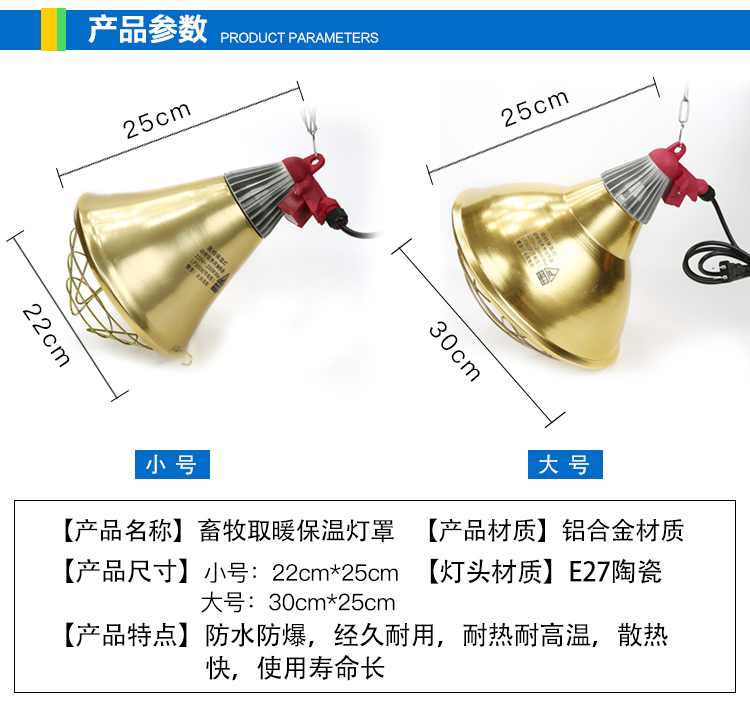 商品詳情商品名稱【惠陽畜牧】 金色畜牧取暖保溫燈罩 保溫燈保護罩 三檔控制保溫燈罩