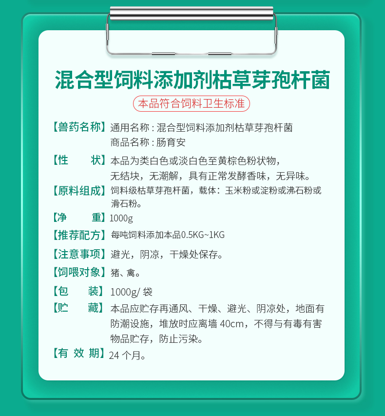 【回盛生物】#腸育安培育速達 枯草芽孢桿菌1kg 混合型飼料添加劑腸道益生菌 促消化健腸道提高免疫力