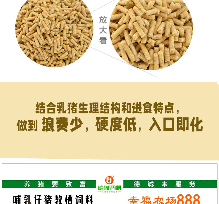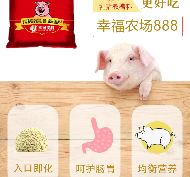 【德誠(chéng)飼料】開口料幸福農(nóng)場(chǎng)888(升級(jí)版3.0)教槽料全價(jià)料;建議使用階段:7日齡-15公斤