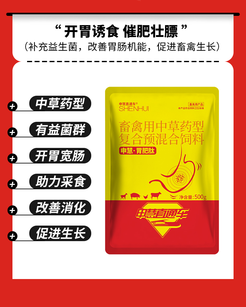 - 滿贈滿1件贈1件,【申慧直通車】胃肥肽500g 開胃催肥促消化 快生長豬用增食 長期添加 一袋拌料500斤 規(guī)格:500g