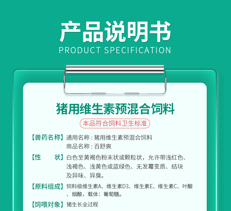 【回盛生物】百舒爽500g 抗應激增免疫豬場常備 復合多維電解多維VC豬用維生素預混合飼料添加劑