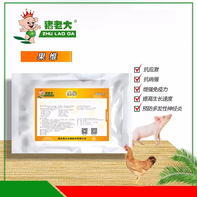 【豬老大】果維 適用于夏季 抗應(yīng)激 補(bǔ)充能量 豬禽用維生素飼料添加劑500g