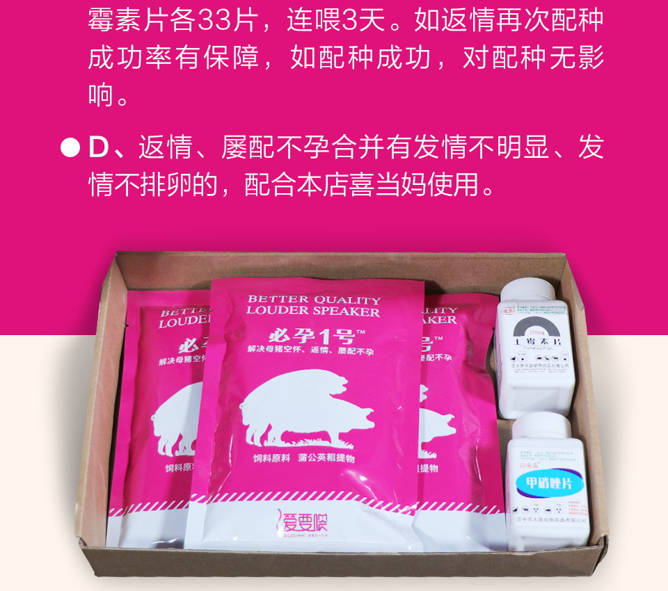 【愛要喂】必孕1號套餐母豬空懷、返情、屢配不孕。母豬保健土霉素甲硝唑產后消炎子宮炎益母促排卵惡露不凈
