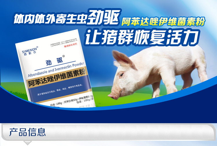 【西默農(nóng)】勁驅(qū) 阿苯達(dá)唑伊維菌素粉,體內(nèi)外驅(qū)蟲藥 100g*100包 整箱10公斤